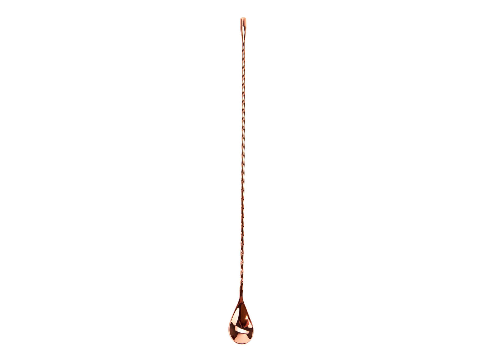 Flot og lang barske på 40 cm med kobber belægning. Denne elegante barske vil både pynte og være et brugbar redskab i baren. Det lange snoede skaft gør det nemmere med røre rundt i cocktailen, om det så er i et mixing glas eller direkte i serveringsglasset. For enden af barskeen finder man en dråbeformet afslutning på skeen, som udover vægt også kan anvendes til at slå isterninger fra hinanden. Husk på, at alt kobber belagt barudstyr skal vaskes af i hånden og vil få naturlig patina efterhånden som man tager den i brug.