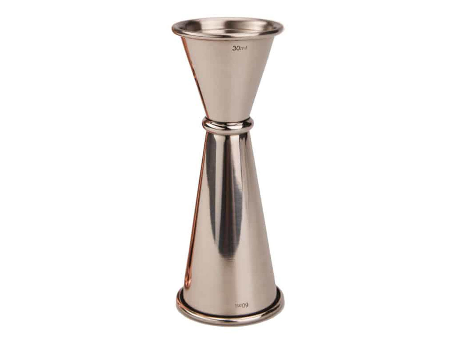 Denne Jigger, eller målebæger på dansk, er den oplagte målenhed til din bar. Med de to kamre kan du afmåle henholdsvis 30 og 60 ml - 3 og 6 cl. Det svarer også til 1 og 2 Oz, skulle du have en opskrift med amerikanske mål på. I det lille kammer finder du to ringe, der hver markerer 15 og 22,5 ml, ligesom der i det store kammer er en markering ved 45 ml. Dermed har du mulighed for at afmåle en lang række forskellige mål, så opskriften kan følges.