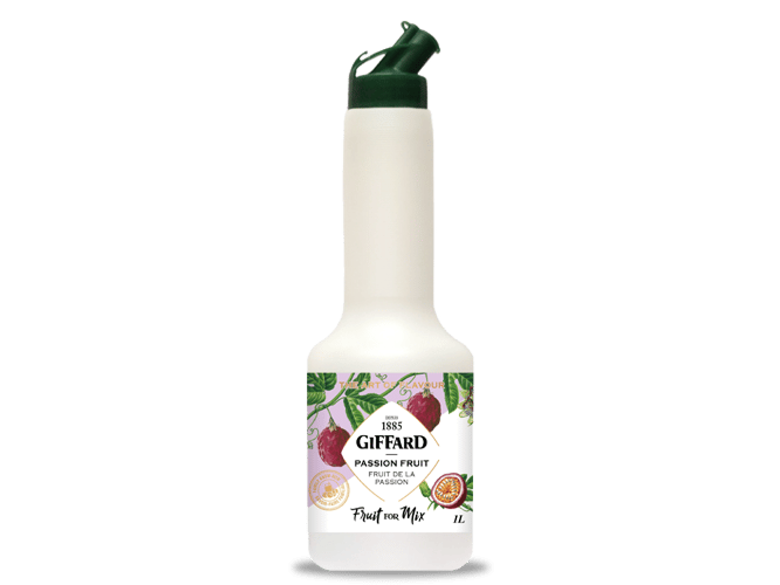 Giffard Passion Fruit for Mix 1L har en skarp saffron gul farve. Duften har en meget genkendelig passionsfrugt aroma, og den er syrlig. Smagen er der et typisk angreb af syre, saftig passionsfrugt. Den er behageligt syrlig med en let bitter afslutning fra frøene.