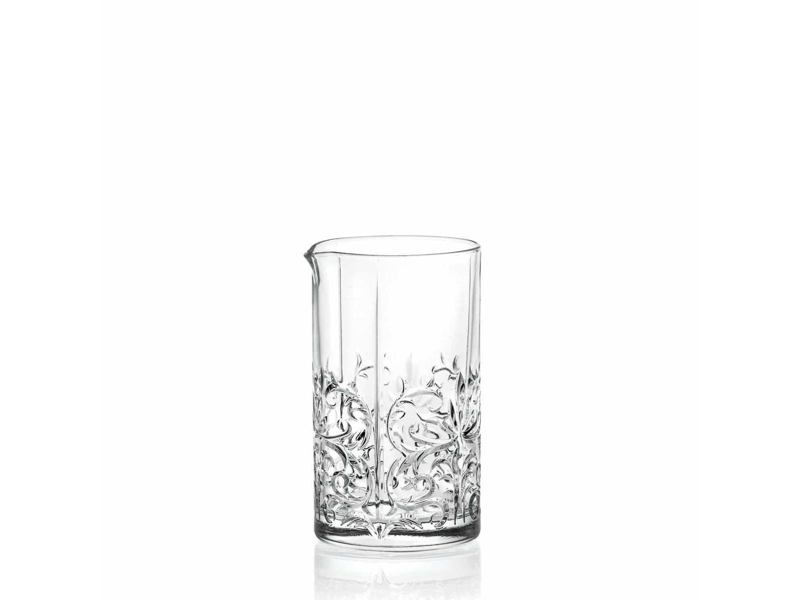 Mixerglasset er det eneste Tattooglas, der kun har blomstermønster på den nederste halvdel og en helt transparent top. Det ser flot ud på baren, eller i selskab med alle Tattoo-seriens glas, hvis du vil servere en drink, som kunden selv kan skænke op.